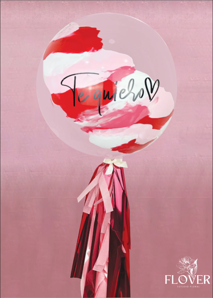 Altura promedio del globo: 1.60M. Los tonos pueden variar debido a la resolución de la pantalla. INCLUYE TEXTO CON VINIL "Te quiero"