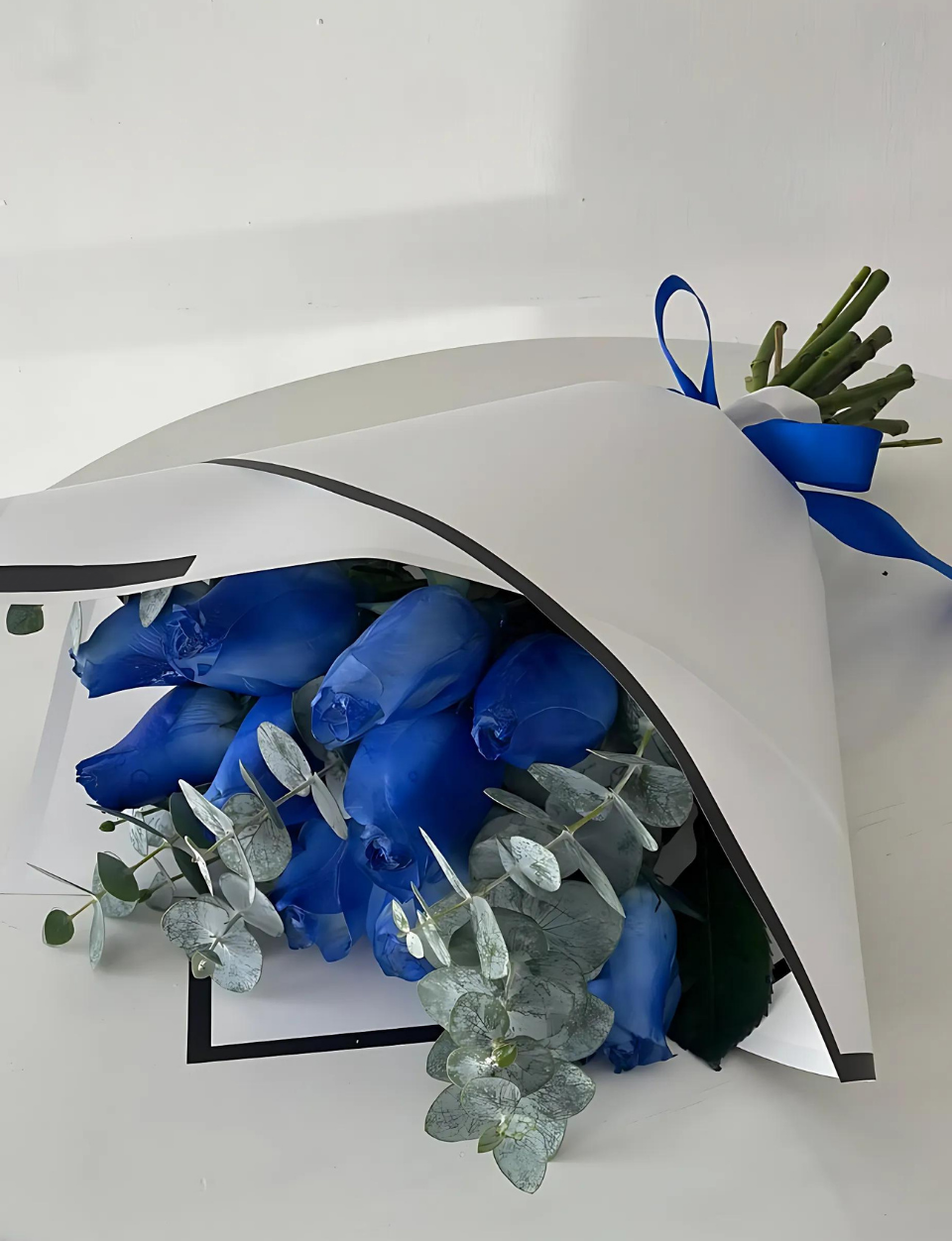 La rosa azul, aunque inusual, simboliza el misterio, la fascinación y lo extraordinario. Su color vibrante y llamativo crea un efecto visual impactante, atrayendo la atención y evocando una sensación de magia y romanticismo. Las rosas azules son perfectas para expresar sentimientos profundos y especiales, convirtiendo este bouquet en un regalo significativo para ocasiones especiales.