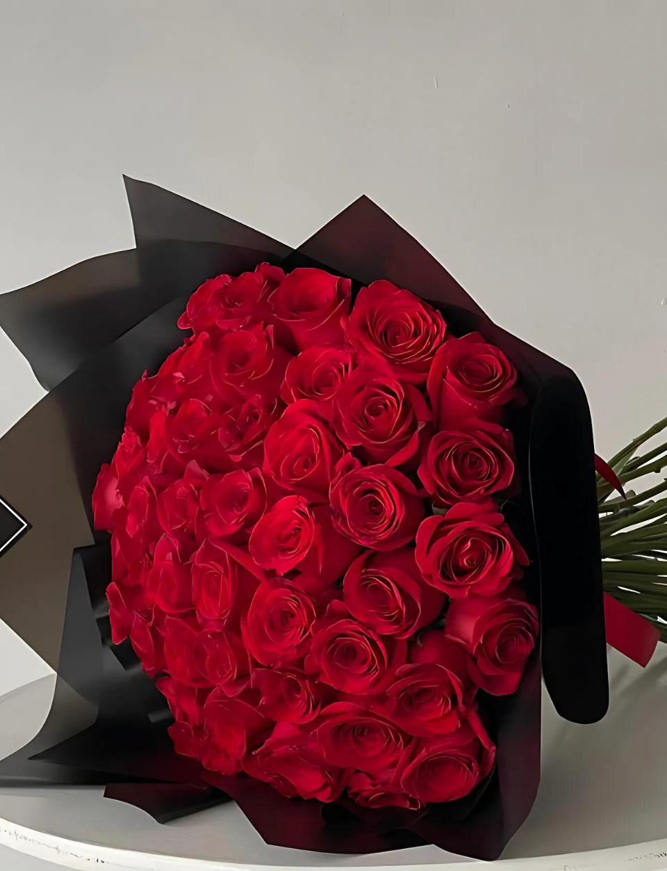 Este impresionante ramo presentado en papel blanco o negro es una declaración de elegancia y sofisticación, diseñado para realzar la belleza de las rosas, ya sean clásicas o premium. El cono negro aporta un contraste dramático que resalta los vibrantes colores de las rosas, creando una presentación visualmente impactante.